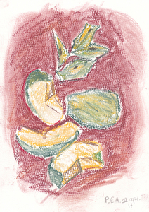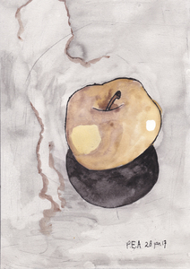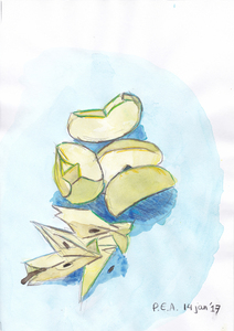 Op 26 december heb ik besloten 365 dagen lang elke dag een kleine tekening of een klein schilderij te maken op A4 formaat met verschillende technieken en materialen. Thema is "An Apple a Day . . . !"